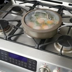 - Silicone-rimmed tempered glass lids allow you to monitor your food during the cooking process.